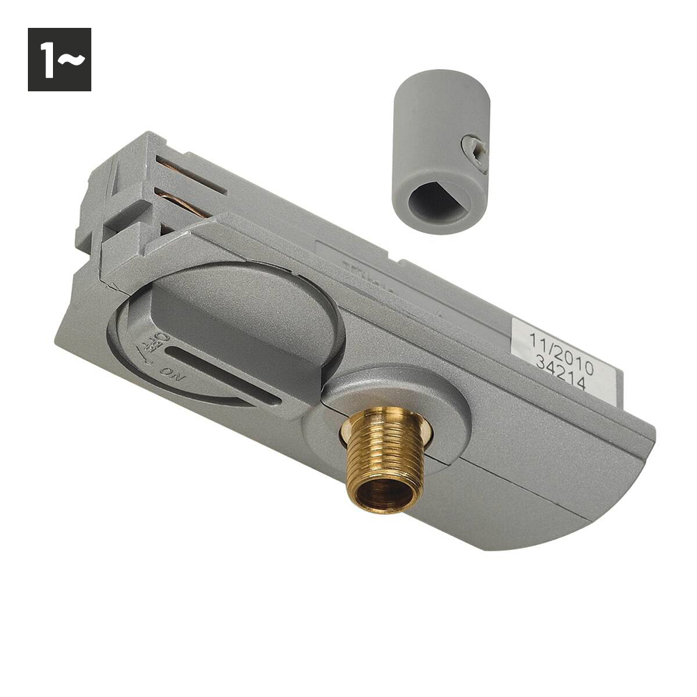 1-Phasen Pendelleuchtenadapter silbergrau inkl. Zugentlastung und Gewindestück für das Hochvolt 1-Phasen-Aufbauschienen-System von SLV. Durch den Pendelleuchten-Adapter können viele systemfremde Hochvolt-Pendelleuchten in ein SLV 1-Phasen Schienensystem integriert werden. Auch Hängeleuchten mit mehreren zur Decke führenden Kabeln sind kein Problem. Es muss lediglich die entsprechende Anzahl an Adaptern benutzt werden.
