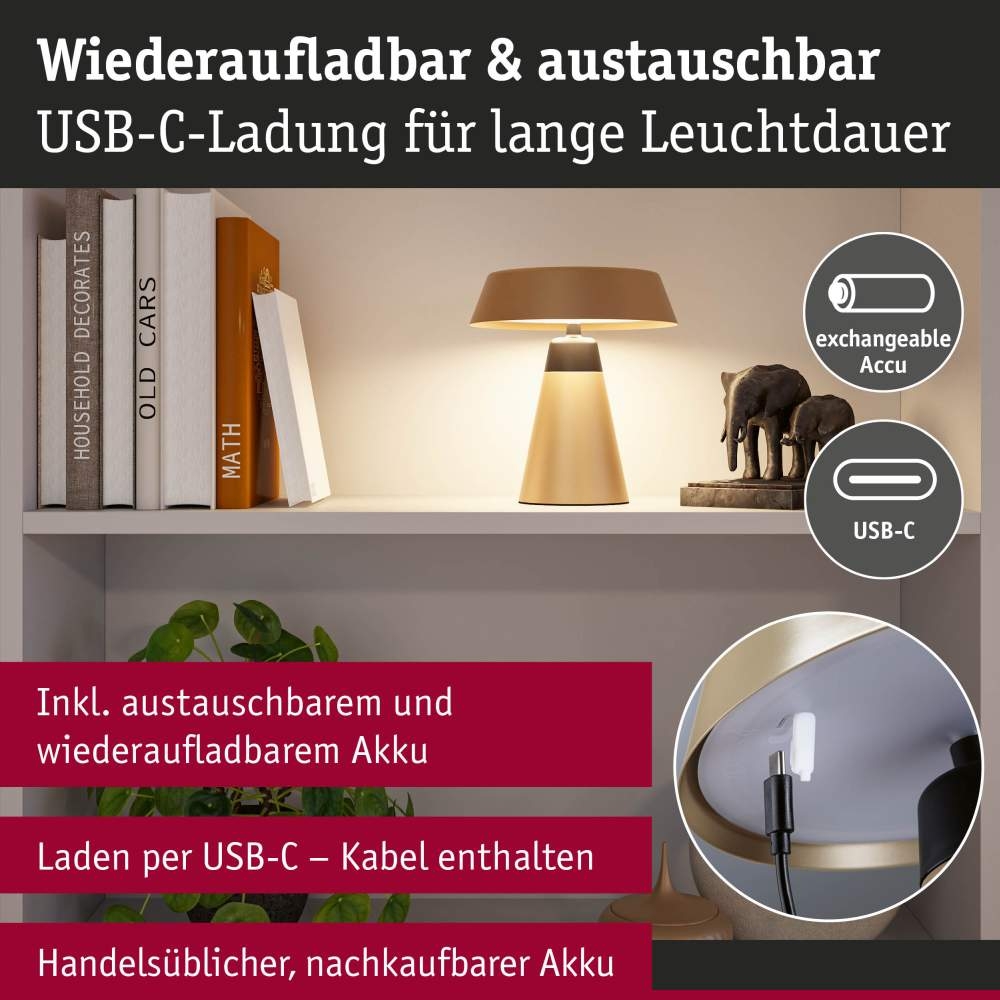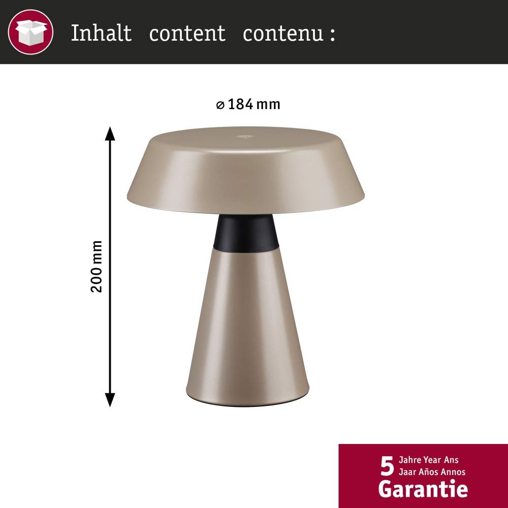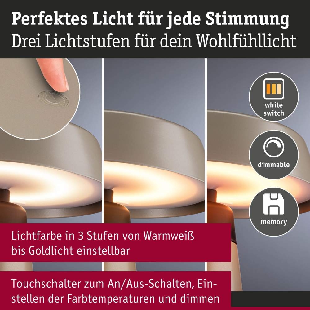 Paulmann 77061 Akkuleuchte Lirox IP44 White Switch Champagner Schwarz