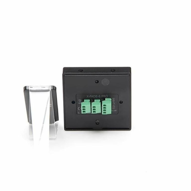 Der X-Fade 6 ist ein Wandcontroller für DMX LED Dimmer. Es können bis zu 6 Fader direkt bedient und mit einem entsprechenden DMX-Dimmer verbunden werden. Es können z.B. 2 RGB Stripes angesteuert werden oder auch 6 einzelne einfarbige Stripes in 6 verschiedenen Zonen. Weiterführend kann der X-Fade 6 auch als Standard 6 Kanal DMX Controller benutzt werden und bietet so die Möglichkeit, auch DMX Dimmer oder Geräte mit bis zu 6 Kanälen anzusteuern. Zusätzlich können bis zu 6 verschiedene Programme abgerufen werden. Jedes Programm kann bis zu 100 Schritte beinhalten. Programme können auch selbst programmiert werden. [Einbaudose wird zur Montage des Controllers benötigt].