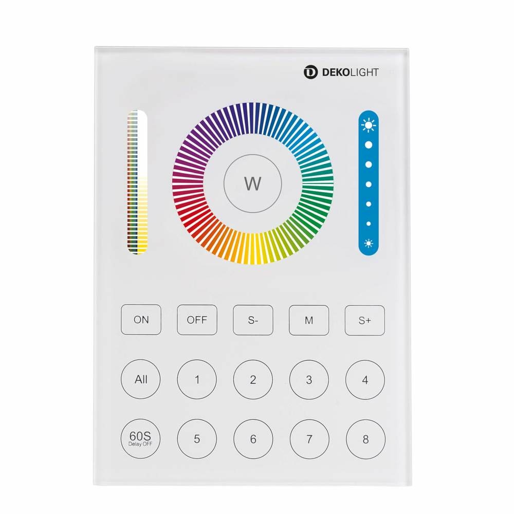 - Deko-Light, Steuerung RF, RF-smart, Wandfernbedienung, weiß, 8 Zonen, Single/CCT/RGB/RGBW/RGB+CCT, IP20, RF, Eingangsspannung: 3 V/DC