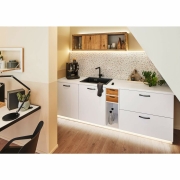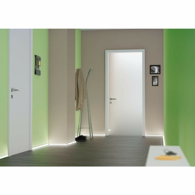 Delta Profil wird mit LED-Strips in beliebiger Lichtfarbe bestückt und ermöglicht dekorative Effekte für Fußleisten und Abschlusskanten. Auch als Zusatzlicht für Nutzflächen und Unterschränke einsetzbar oder bei Schatten- und Gefahrstellen als Orientierungs- und Leitlicht. Dauerlicht bei sparsamer LED-Bestückung.