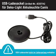 - USB-Ladesockel nicht im Lieferumfang (optional)