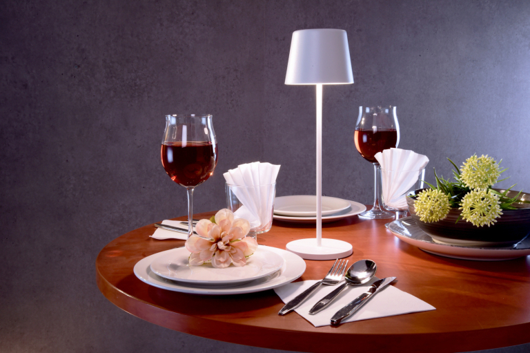 Deko-Light 346049 Dimmbare LED Akku Tischlampe Canis Weiß matt - Kabellose Touch Tischleuchte - Warmweiß IP65