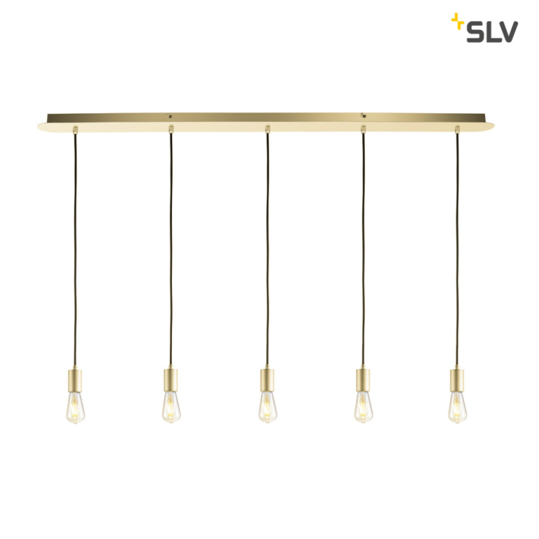 Die längliche FITU Deckenrosette ist in verschiedenen Farbvarianten mit drei oder fünf Ausgängen verfügbar und ermöglicht eine beliebe Kombination mit FITU E27 Pendelleuchten. Eine entsprechende Zugentlastung befindet sich im Lieferumfang.