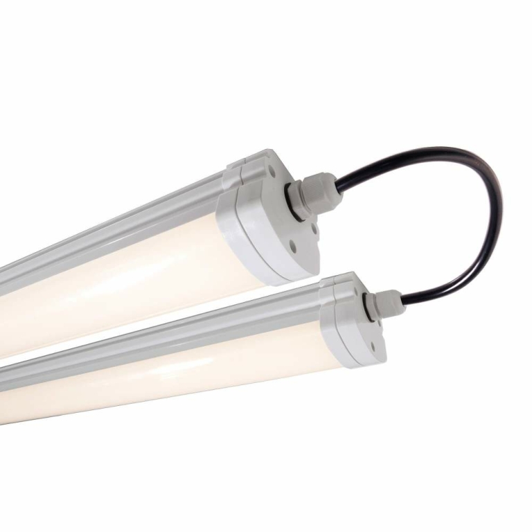 Ausgestattet mit LEDs in neutralweißer Lichtfarbe [4000 K], besteht die TRIPROOF LED IP65 Feuchtraumleuchte aus einem hellgrauen Polycarbonatgehäuse und einer satinierten Polycarbonatabdeckung in einem Stück. Sie ist geeignet für einfache Decken-, Wand- oder Pendelmontage und ist in drei unterschiedlichen Längen verfügbar. Es können mehrere aneinander gereiht werden; ideal für den industriellen und privaten Einsatz z.B. für die Beleuchtung unter Vordächern, in Kellerräumen, Werkstätten, Garagen, Industriehallen etc. Die Leuchte ist mit einem einfachen elektrischen Anschluss mit Steckanschlussklemme versehen.