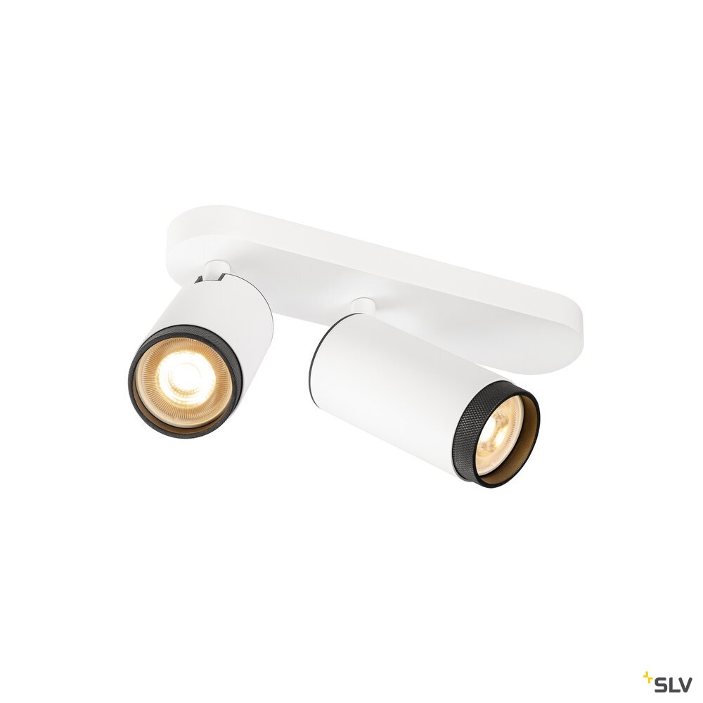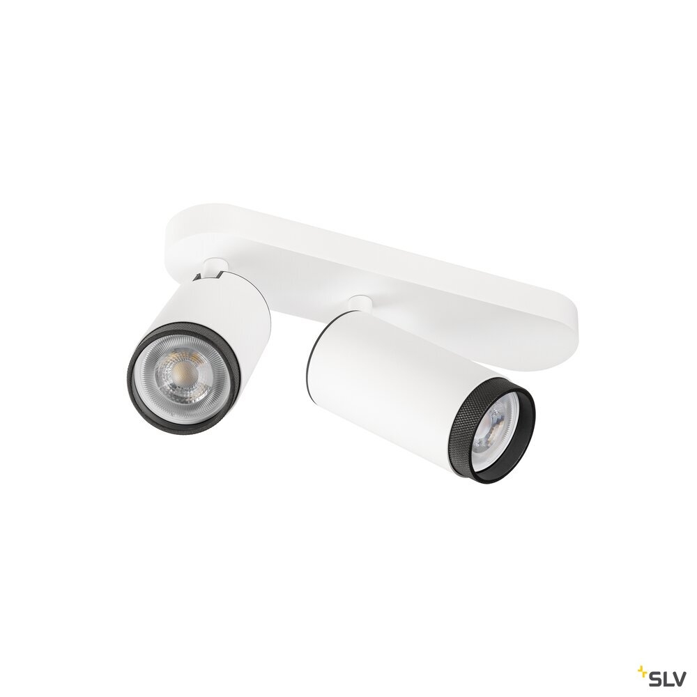 SLV 1009096 GRIP! L, SPOT CL, double, QPAR51, Deckenaufbauleuchte, zylindrisch, 2 x max. 6 Watt, weiß /schwarz