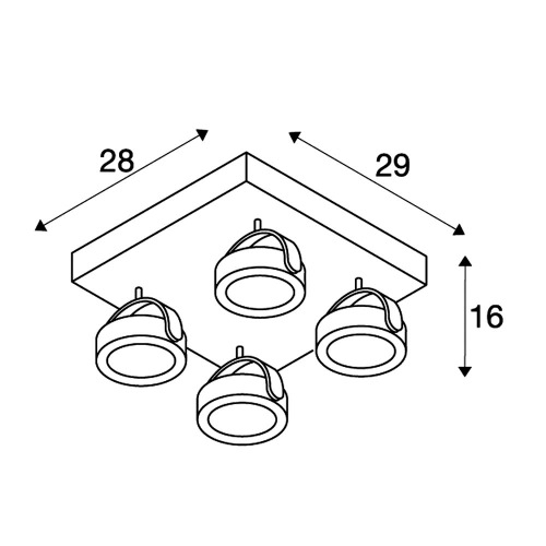 SLV 1000135 KALU LED 4 Wand- und Deckenleuchte, square, schwarz, 3000K, 60°