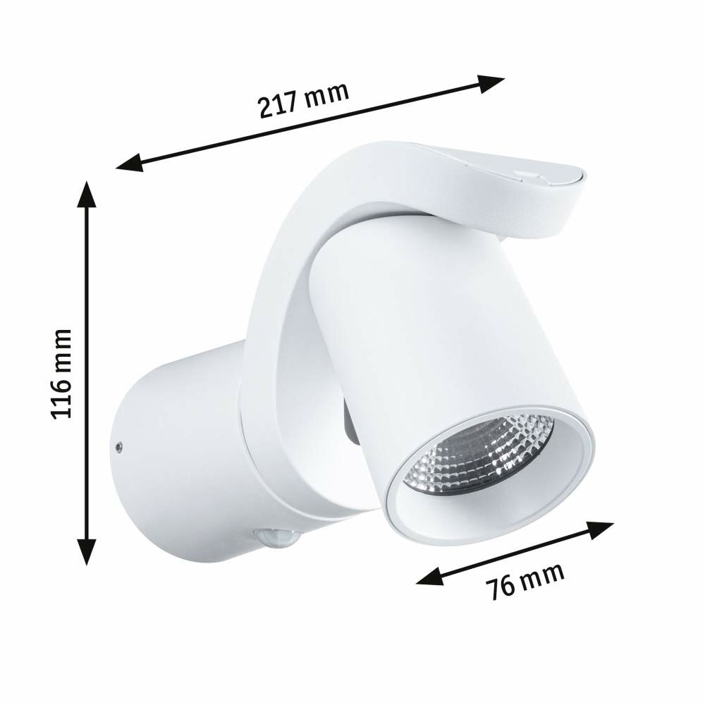Paulmann 94832 LED Außenwandleuchte Cuff Bewegungsmelder IP44 76x217mm 3000K 10W 700lm 230V 70° Weiß Aluminium