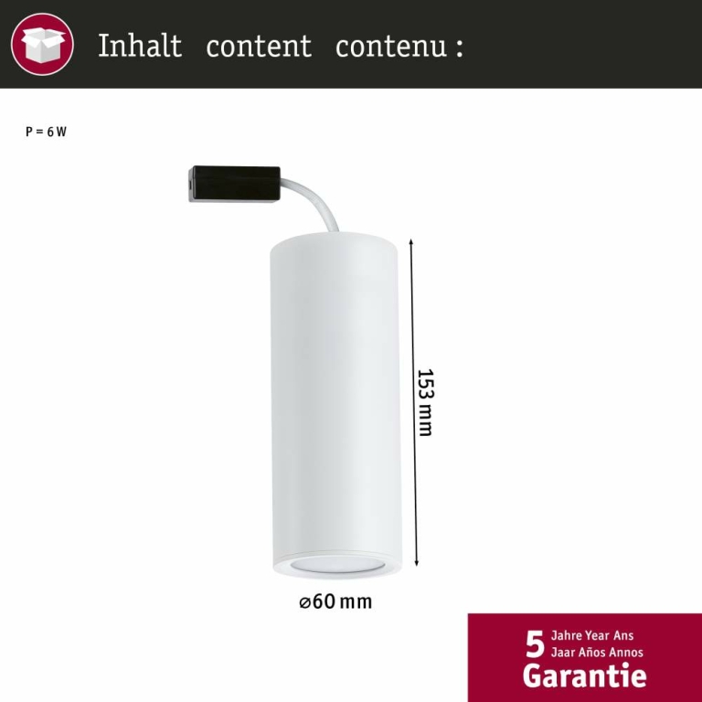 Paulmann 93105 LED Deckenleuchte 3-Step-Dim Barrel 2700K 470lm 230V 6W dimmbar Weiß matt