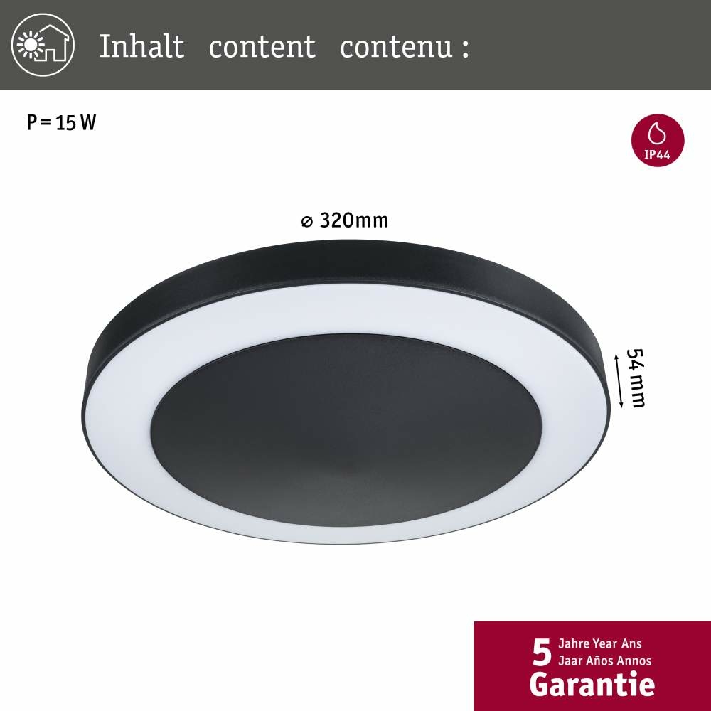 Paulmann 94526 LED Deckenleuchte Circula rund anthrazit mit Bewegungsmelder & Dämmerungssensor IP44 880lm 3000K 230V seewasserresistent
