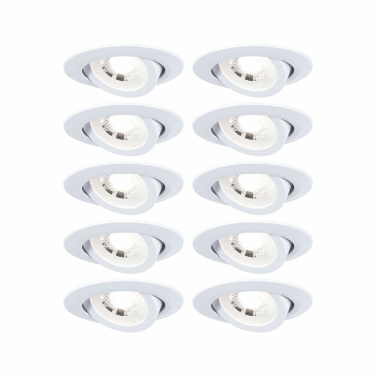 Paulmann 99995 LED Einbauleuchte 10er-Pack 3-Step-Dim schwenkbar rund 82mm 4,8W 450lm dimmbar 3000K Weiß matt 230V