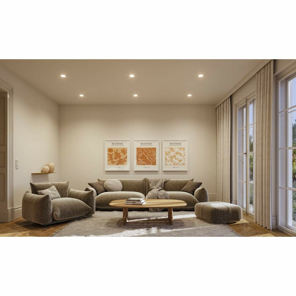 Liebe auf den zweiten Blick! Die Einbauleuchten Cole in Weiß verschmelzen durch die zurückgesetzten Leuchtmittel nahezu mit der Decke. Hat man sie aber entdeckt, möchte man gar nicht mehr wegschauen. Das Licht der zurückgesetzten Coins auf der matten, weißen Oberfläche, sorgt für weiche und blendfreie Beleuchtung. Zusätzlich punkten sie mit brillanter Technik: Die wechselbaren LED Coins liefern angenehm warmweißes Licht und lassen sich mit einem herkömmlichen Lichtschalter in drei Stufen dimmen.
