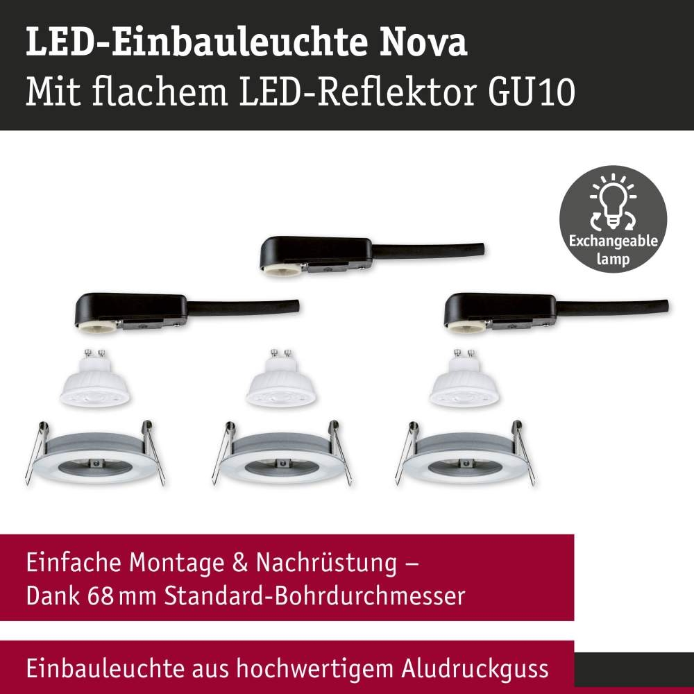 Paulmann 92309 LED Einbauleuchte Nova GU10 Flat starr IP44 3x4,9W 3x550lm 230V 2700K Alu gedreht