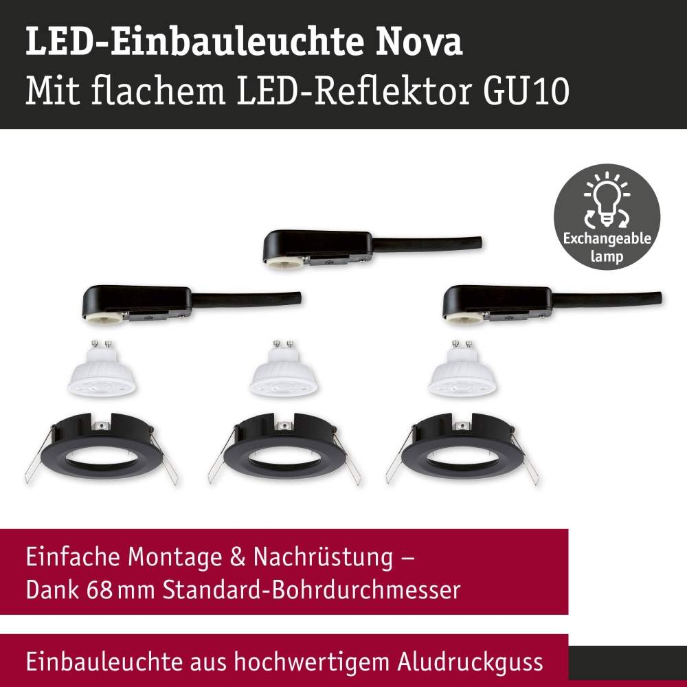 Paulmann 92339 LED Einbauleuchte Nova GU10 Flat starr IP44 3x4,9W 3x550lm 230V 4000K Schwarz matt