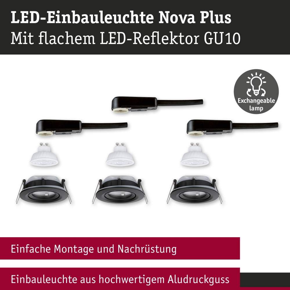 Paulmann 92418 LED Einbauleuchte Nova Plus GU10 Flat IP65 93mm 3x4,9W 3x550lm 230V dimmbar 2700K Schwarz matt