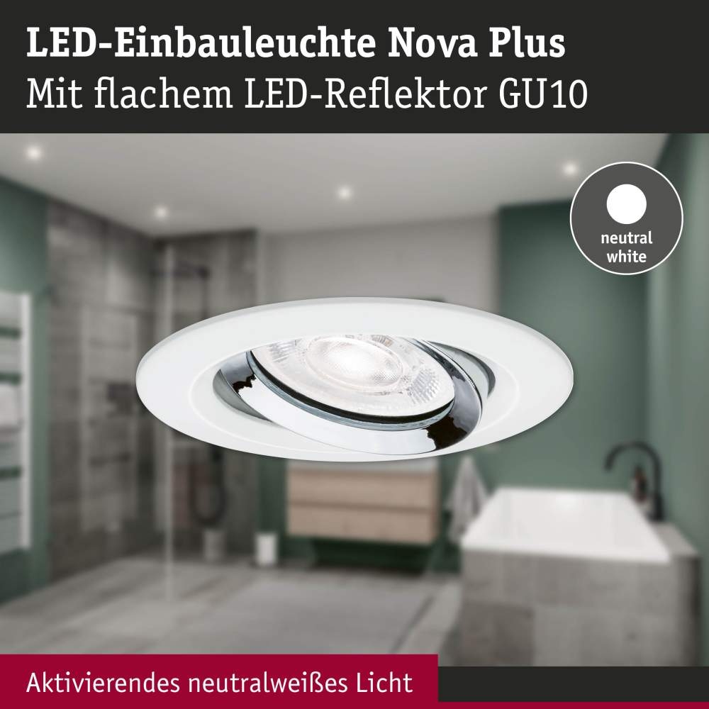 Paulmann 92422 LED Einbauleuchte Nova Plus GU10 Flat IP65 93mm 4,9W 550lm 230V dimmbar 4000K Weiß matt#Chrom