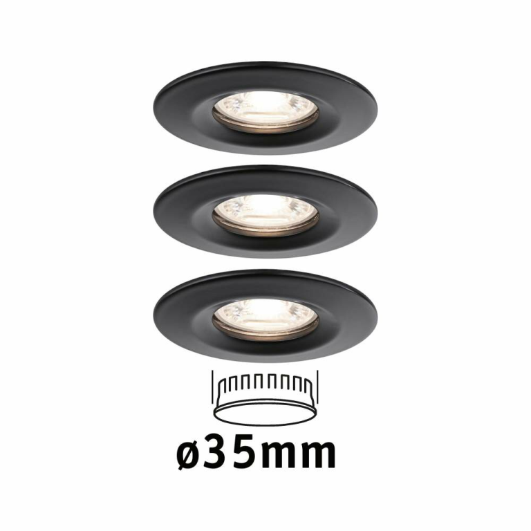 Paulmann 93084 LED Einbauleuchte Nova mini Coin 3er-Set starr IP44 4W 2700K Schwarz matt 230V