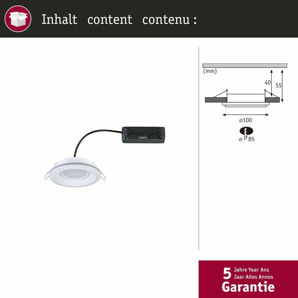 Paulmann 92247 LED Einbauleuchte Sormus Einzelleuchte IP65 rund 100mm 4,8 / 1,5W 560lm / 180lm 230V 3000K Weiß