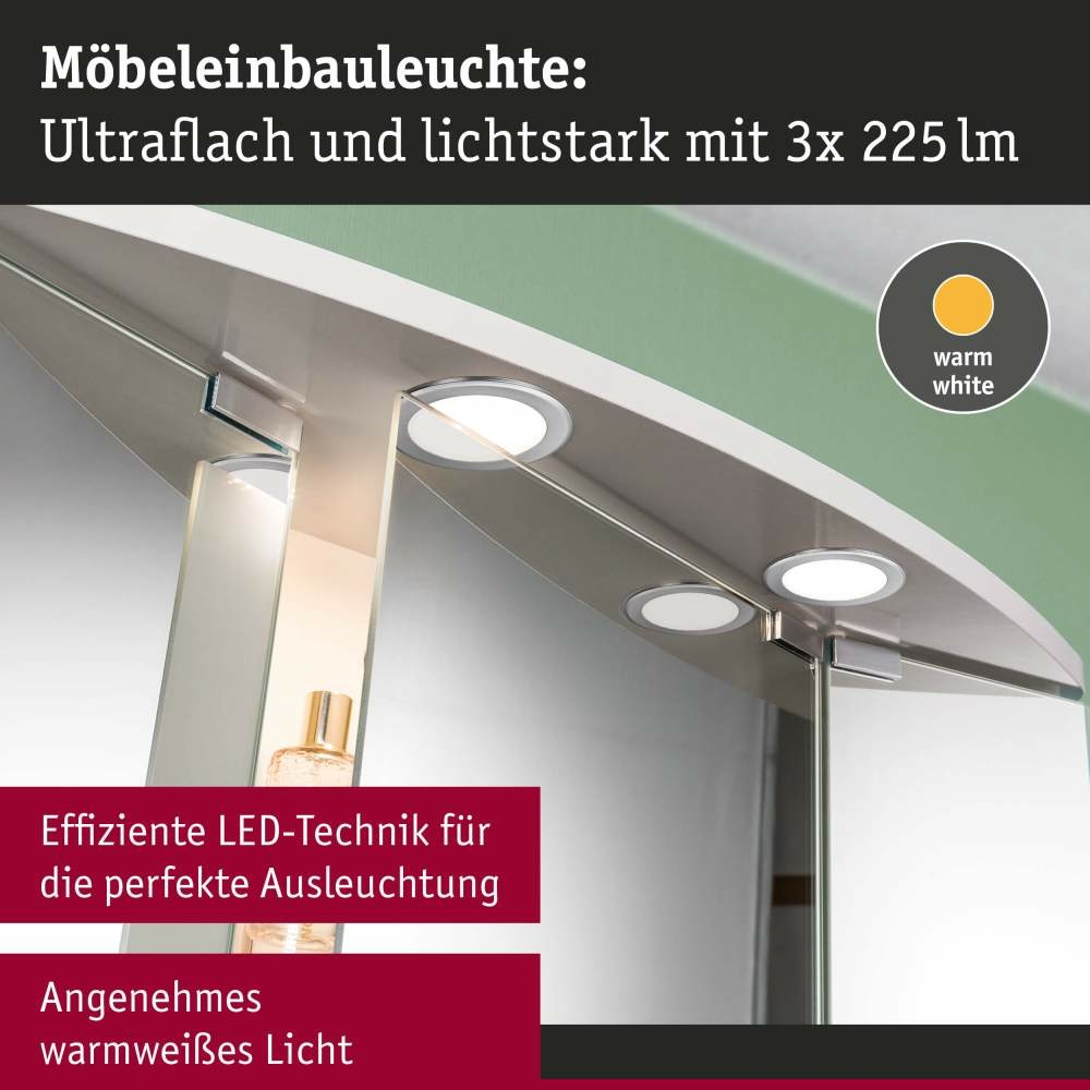 Paulmann 93116 LED Möbeleinbauleuchten 3er-Set rund 65mm 3x2,5W 3x180lm 230/12V 3000K Eisen gebürstet