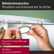 Paulmann 93119 LED Möbeleinbauleuchten 3er-Set rund 65mm 3x2,5W 3x180lm 230/12V 3000K Gold matt