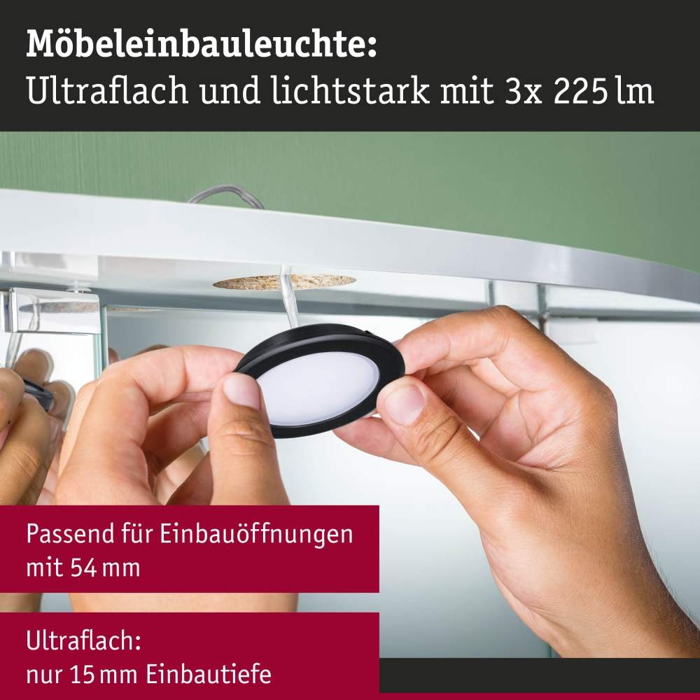 Paulmann 93122 LED Möbeleinbauleuchten 3er-Set rund 65mm 3x2,5W 3x180lm 230/12V 4000K Schwarz matt