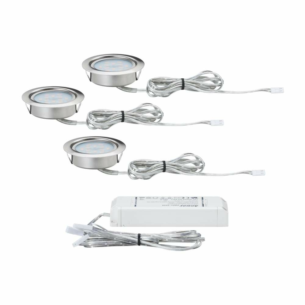 Paulmann 93553 LED Möbeleinbauleuchten Micro Line Eisen gebürstet rund 3er-Set 2700K inkl. Trafo