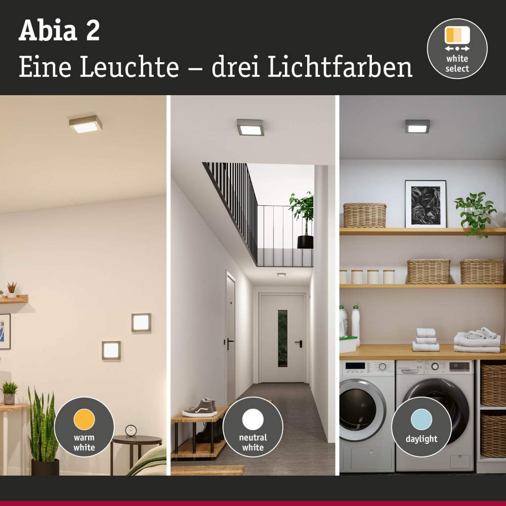 Mehr Komfort. Mehr Sicherheit. Mehr Möglichkeiten! Das Abia 2 Panel macht Schluss mit Kompromissen und bringt eine funktionale Beleuchtungslösung in jeden Raum. Per Dip-Schalter kann der integrierte dämmerungsgesteuerte Bewegungssensor vor der Montage aktiviert oder deaktiviert werden. Dadurch bietet das Panel die optimale Lösung für unterschiedliche Anforderungen in Funktionsräumen, Küchen oder Fluren. Der Sensor reagiert zuverlässig auf Bewegung und sorgt dank automatischer Lichtsteuerung für höheren Komfort und Sicherheit. Bei aktiviertem Sensor schaltet das Licht nur, wenn es gebraucht wird und ermöglicht dadurch eine energieeffiziente Nutzung. Bei deaktiviertem Sensor lässt sich das Panel wie gewohnt komfortabel über den vorhandenen Wandschalter ein- und ausschalten. Maximale Flexibilität bietet auch der White Select Dip-Schalter, mit dem vor der Montage die Lichtfarbe eingestellt werden kann. Nach Bedarf kann dabei zwischen zwei Warmweißtönen und einem Neutralweißton gewählt werden. Das Panel mit einem Durchmesser von 170x170mm ist einfach montierbar und fügt sich mit dem zeitlosen Design in Chrom matt nahtlos in jede Wohn-, Funktions- oder Arbeitsumgebung ein.