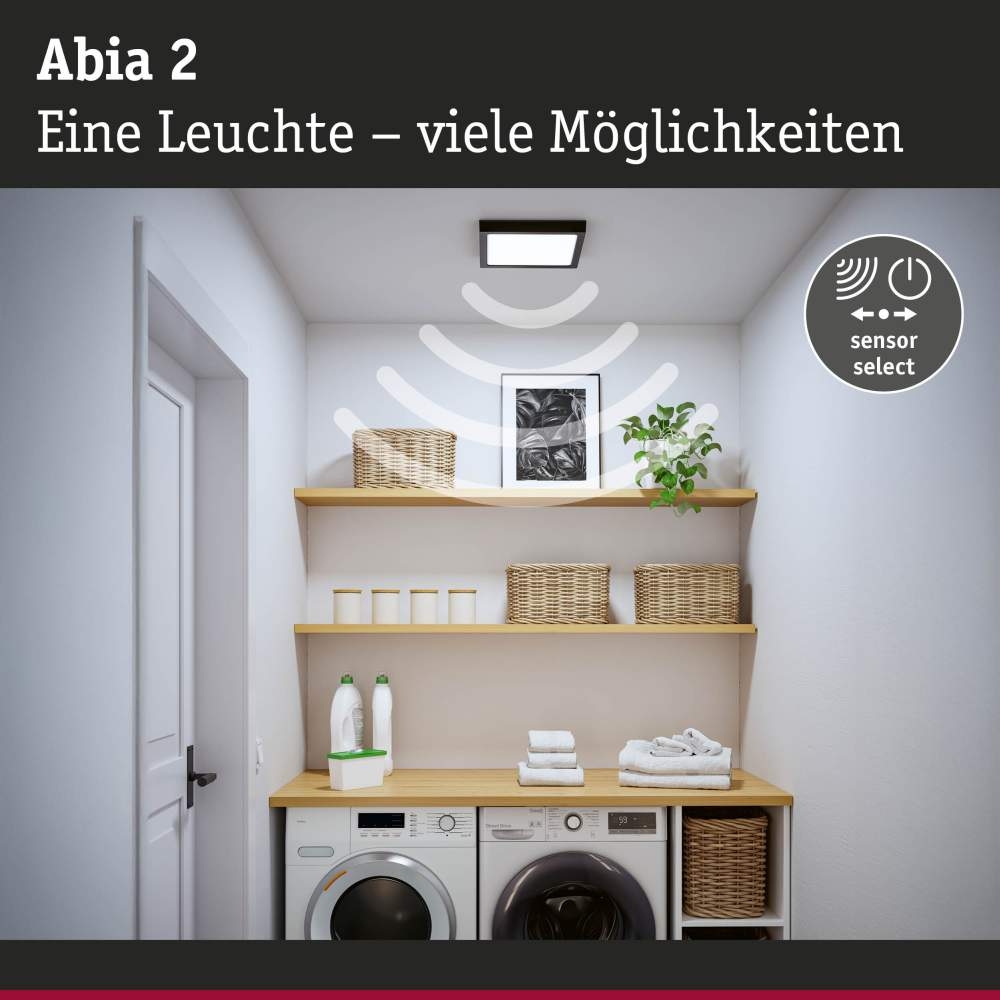 Paulmann 71302 LED Panel Abia 2 White Select Dämmerungsgesteuerter Bewegungsmelder (HF) eckig 300x300mm 14W 900lm 2700 - 4000K Schwarz