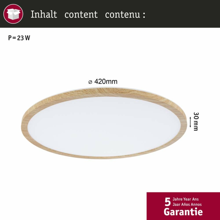 Paulmann 71029 LED Panel Atria Shine Backlight IP44 rund 420mm 22W 2300lm 3000K Holzoptik