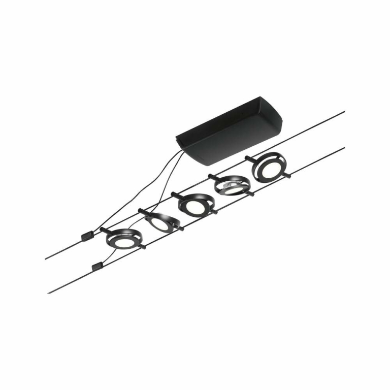 Paulmann 94418 LED Seilsystem RoundMac Basisset 5x280lm 5x4,5W 3000K 230/12V Schwarz matt/Chrom
