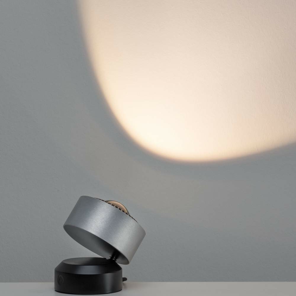 Moderne Technik und elegantes Design vereint die Aldan Tischleuchte. Sie lässt sich kippen, sodass durch Anstrahlen der Wand indirekte, flächige Lichteffekte entstehen.