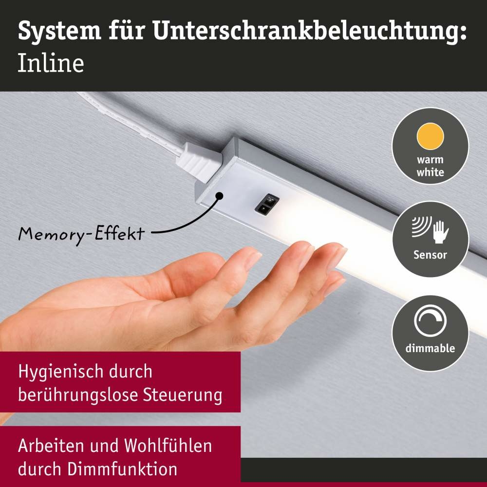 Paulmann 98620 LED Unterschrankleuchte Inline 2er-Set Erweiterungsset PIR-Sensor 3000K dimmbar 2x6W 550x26mm 2x500lm 24V Chrom matt