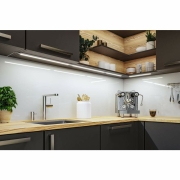 Das Erweiterungsset bestehend aus zwei Möbelleuchten Inline in dezentem Weiß matt und einer Länge von 550x26mm ist die perfekte Ergänzung für das Starterset Inline. Die Leuchten sind eine elegante Lösung, um Küchenarbeitsflächen optimal zu beleuchten. Mit der Dimmfunktion kann die warmweiße Lichtfarbe ganz nach Bedarf eingestellt werden. Zudem bestehen die Leuchten aus leicht zu reinigenden hochwertigen Materialien, sodass sie problemlos sauber gehalten werden können. Der PIR-Sensor ermöglicht ein berührungsloses Ein- und Ausschalten, was zusätzlich zur hygienischen Arbeitsweise beiträgt. Der Memory-Effekt speichert zudem die eingestellte Lichtfarbe, sodass diese nicht jedes Mal neu eingestellt werden muss. Mit einer Farbtemperatur von 3000K strahlen die Leuchten ein angenehm warmweißes Licht aus und sind dimmbar.