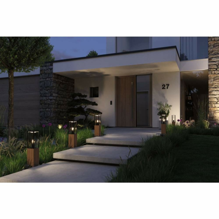 Mit dem stilvollen Mix aus Schwarz und Holz ist das Lichtobjekt Timba mit einer Höhe von 60 cm ein echter Blickfang für den Außenbereich. Es strahlt sowohl Eleganz als auch Modernität aus und bringt stimmungsvolles Licht als Gehwegbeleuchtung, im Garten oder auf der Terrasse. Dank Spritzwasserschutz ist die Leuchte ideal für die Installation im Außenbereich geeignet.