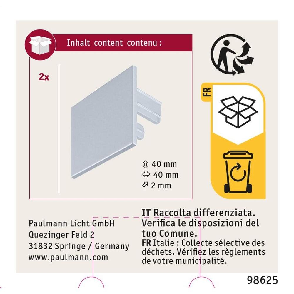 Paulmann 98625 Linion Zubehör Endkappe 2er-Set Chrom matt Kunststoff