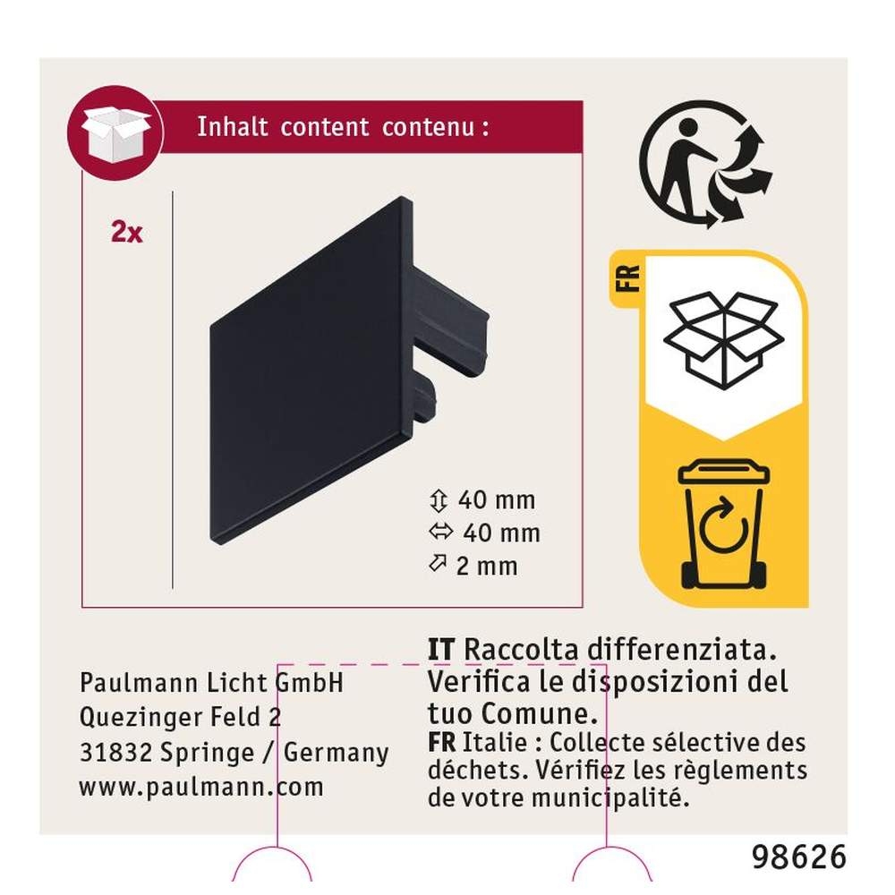 Paulmann 98626 Linion Zubehör Endkappe 2er-Set Schwarz matt Kunststoff