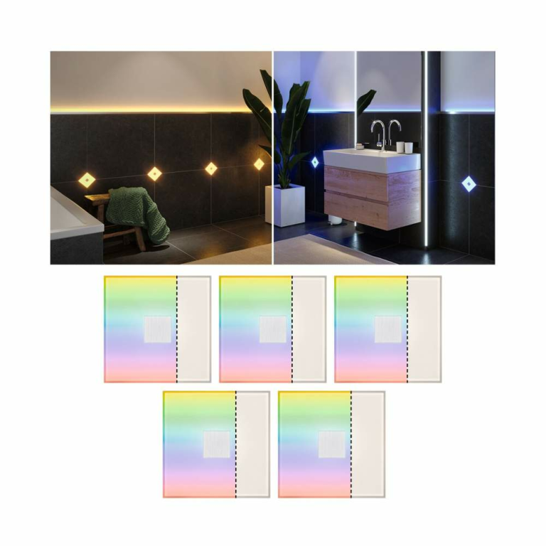 Paulmann 78413 LumiTiles LED Fliesen Square 5er-Set IP44 100x10mm 5x65lm 230/12V 5x0,75W RGBW Weiß Kunststoff/Aluminium