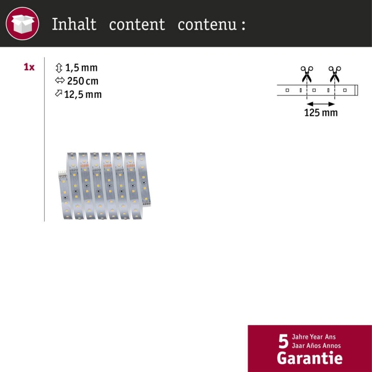 Paulmann 71233 MaxLED 500 LED Strip Warmweiß Einzelstrip 2,5m 9W 550lm/m 64 LEDs/m 2700K