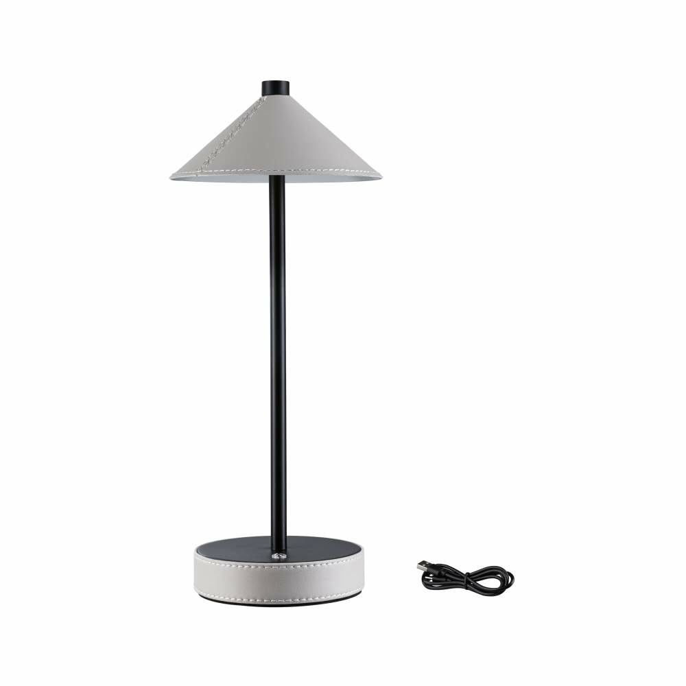 Paulmann 71176 Mobile Akku-Tischleuchte Pellini Schwarz matt/Beige in Lederoptik mit USB-C White Switch Dimmbar via Touch-Schalter Höhe 37cm