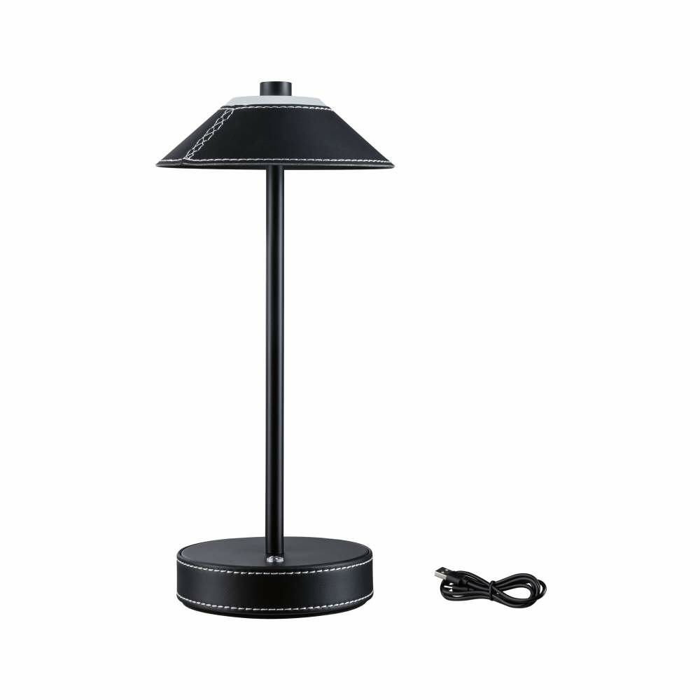 Paulmann 71173 Mobile Akku-Tischleuchte Pellini Schwarz matt in Lederoptik mit USB-C White Switch Dimmbar via Touch-Schalter Höhe 33cm