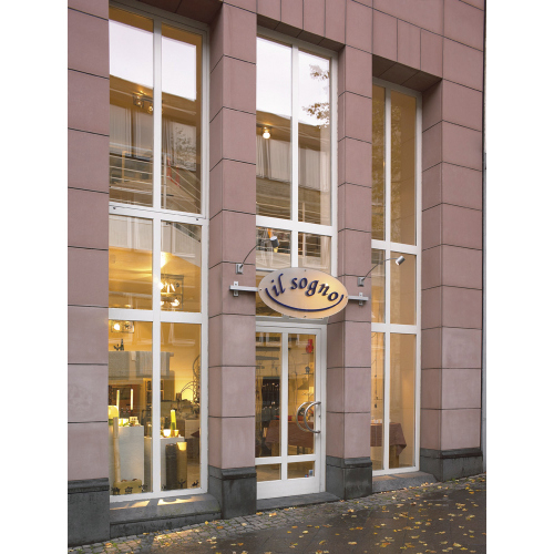 Die gewölbte Displayleuchte der MYRA Serie besteht aus lackiertem Aluminium und Glas welches das Leuchtmittel abdeckt. Der am gebogenen Ausleger montierte Leuchtenkopf ist dreh- und schwenkbar. Durch die Schutzart IP55 ist sie für den Außenbereich geeignet. Der elektrische Anschluss der in mehreren Farbversionen verfügbaren Leuchte erfolgt an 230V Netzspannung. Die MYRA Serie beinhaltet des Weiteren Stand- sowie Wandleuchten und ist somit universell einsetzbar.