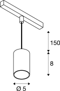 SLV 1006800 NUMINOS® XS, 48V Pendelleuchte, Pendellänge 150cm, 4000K, 40°, DALI 2, matt schwarz / glänzend chrom