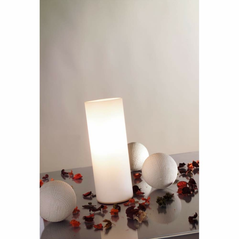 In Form einer Stumpenkerze verbreitete die Tischleuchte Noora eine gemütliche Atmosphäre ohne aufdringlich zu wirken. Gerne kann sie als Bodenleuchte oder auf der Fensterbank eingesetzt werden. Mit ihrem opalisierten Glas eignet sich Noora gut für den Betrieb mit Energiesparleuchtmittel (Energy Saver).