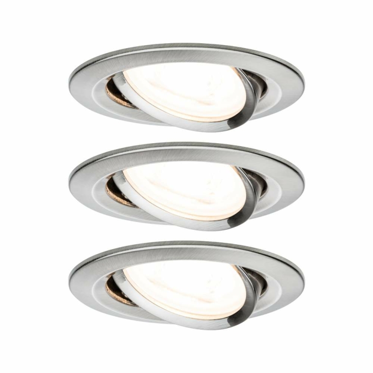 Paulmann 93465 Nova LED Einbauleuchte 3er Set rund 6.5W IP23 GU10 Eisen gebürstet schwenkbar dimmbar 3-step-dim 2700K 230V