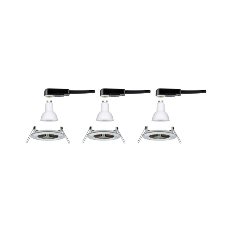 Paulmann 93476 Nova LED Einbauleuchte 3er Set rund 6.5W IP44 GU10 Eisen gebürstet dimmbar 3-step-dim 2700K 230V