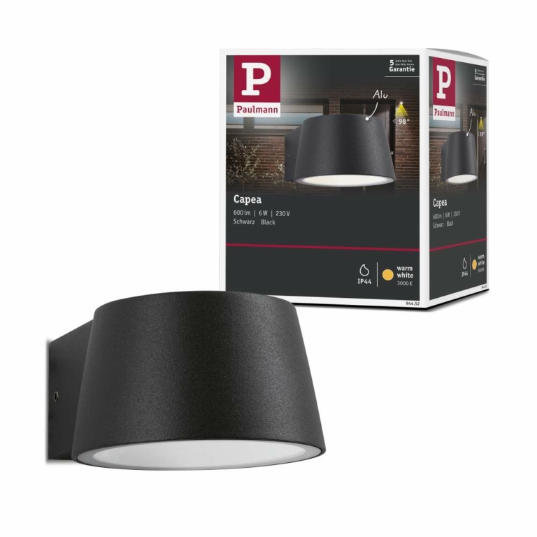 Paulmann 94452 Outdoor Wandleuchte Capea Schwarz IP44 6W 230V Warmweiß