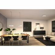 Die Volea Pendelabhängung in Weiß#Silber ermöglicht es, die Deckenleuchte Volea flexibel und gezielt zu positionieren. Mit der Pendelabhängung kann die Deckenleuchte Volea bis zu 150cm von der Decke abgehängt werden. Die Installation ist einfach und unkompliziert. Durch die Verwendung der separat erhältlichen Halterung kann die Volea Deckenleuchte auch als Pendelleuchte genutzt werden, um das Licht gezielt über dem Esstisch oder Küchentresen zu platzieren und zusätzliche Flexibilität zu bieten.