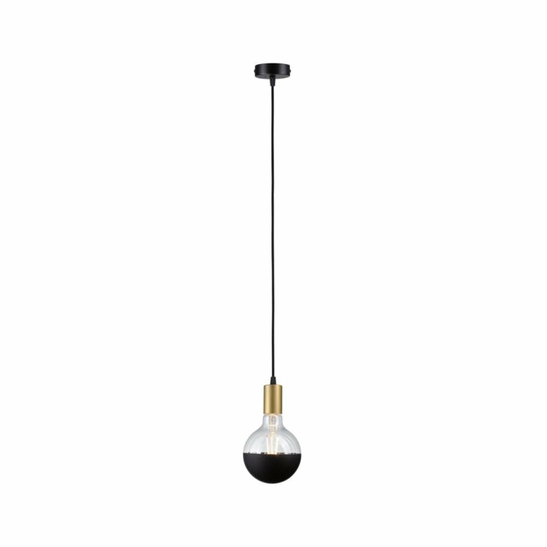 Paulmann 71134 Pendelleuchte Ravi Schwarz matt/Gold E27-Sockel IP44 Textilkabel kürzbar Mix&Match