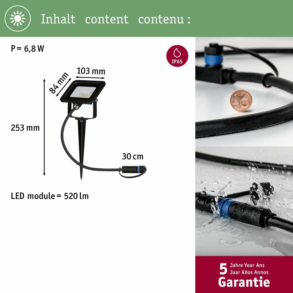 Paulmann 94574 Plug & Shine Erdspieß Flood IP65 6,8W 3.000K Schwarz