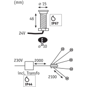 Paulmann 93695 Plug & Shine LED Bodeneinbauleuchte MicroPen II Basisset IP67 3000K 5x0,22W 21VA Silber